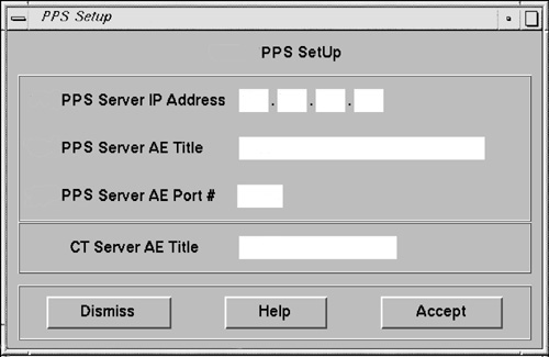 If you have PPS information, enter the data you recorded and obtained from the hospital's network administrator (See Note before Install and Setup ConnectPRO Option from MOD or DVD) into the PPS Setup screen data fields. Then click ACCEPT (See Figure 4). This returns you to the Software Options screen again.