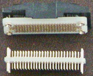 Circuit board material with female pins pressed in. Used on both the flex leads and MDAS 16 backplanes.