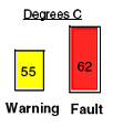 If the temperature reaches 55° Celsius, then a Warning Error message will be posted to the Status Area of the ExamRx Desktop and associated Error Message in the error log.