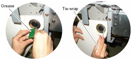 1. Firmly pack the grease (Shell Alvania Grease #2) into the bearing (4~5cc) so that it is applied into the inner race of the bearing. Use a wooden stick or ty-wrap (see #SL2197712-1066498).