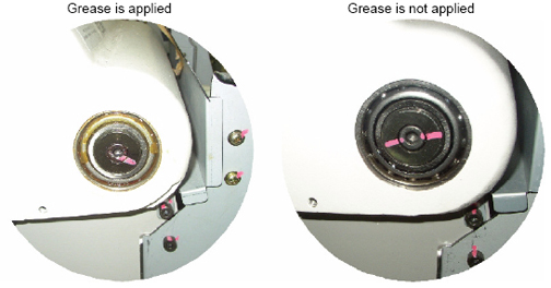 To grease the table rails, follow Steps 5 - 8 of the procedure in Grease Table Rails.