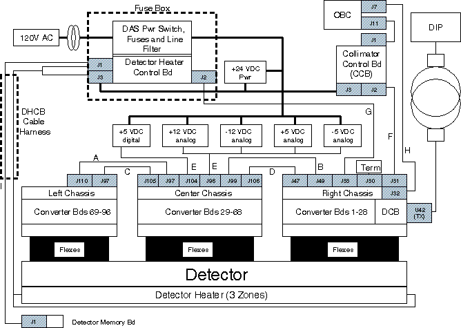 Analog Interface Cable from Right DAS Chassis (J32) to OBC (J7). The Analog Interface Cable is used for monitoring the KV & MA analog control voltages.