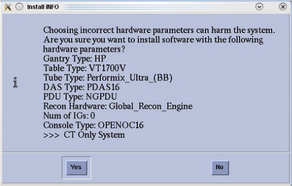 When the system state Install INFO decision box appears, click No.