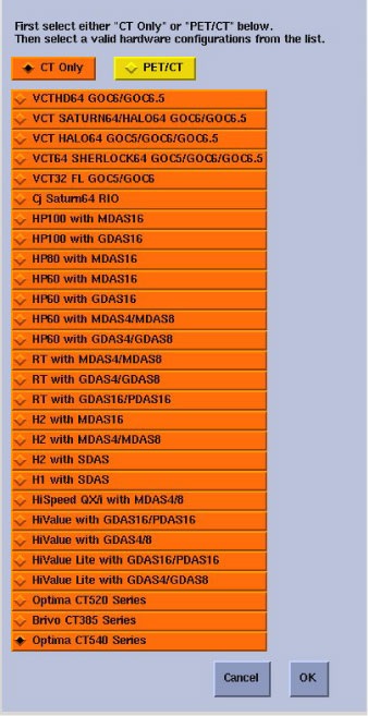 In the hardware configuration window, select the appropriate hardware configuration for the system. Click OK when done.