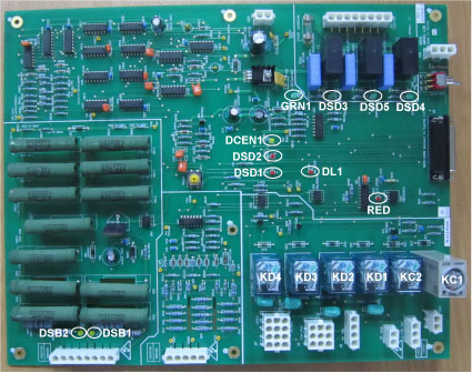 The load side of the fuses is connected to a three-pole contactor, Kxg, having an AC1 rating of 100 Amps. The load side of the contactor is connected to the input of a 3 phase, full wave bridge rectifier / capacitor filter circuit. An auxiliary contactor, Kss, in series with a 20 ohms / phase resistive soft-start circuit is connected in parallel with the main contacts of Kxg.