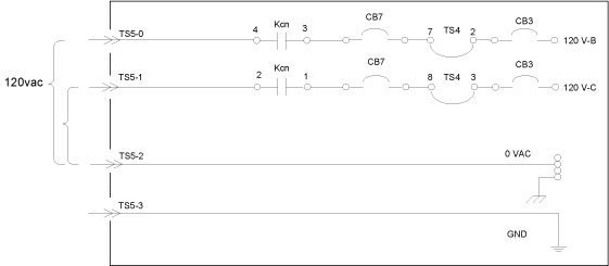 120VAC Power for the console is derived from two legs of 208VAC. Console power is protected by circuit breaker CB7. CB7 is a slave to CB3.