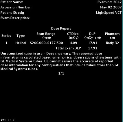 Figure 6. Unrecognized X-Ray Tube “Dose” Message (Example Shown)