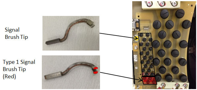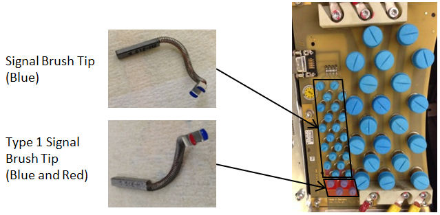 note:Type 1 Signal Brush Tip FRU kit (5350798–2) consists of four brush tips (marked Blue and Red together). It is recommended to replace all four signal lines with Type 1 brush tips (marked Red) at a time for future replacement with HELWIG’s blue signal brush tip.