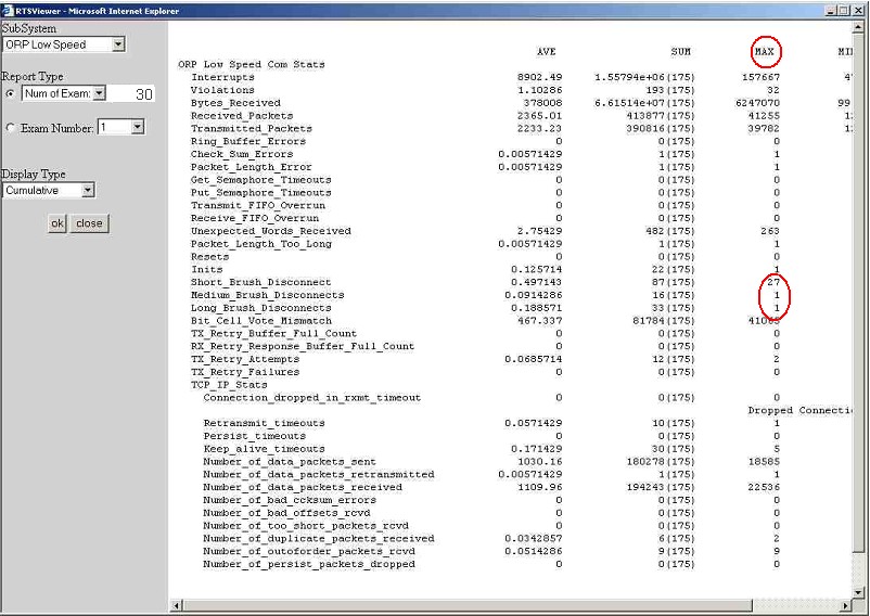 - Ensure that the value in the MAX column is <= 1 disconnect per exam for short, medium, and long disconnects.