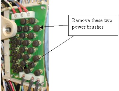 - Remove the four 6 mm cap screws that secure the brush block assembly to the gantry.