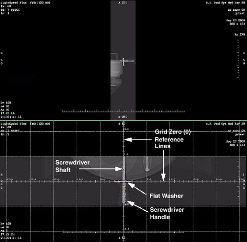 The washer and screwdriver shaft need to be centered under the zero (0) grid lines. Both washer and screwdriver should also be parallel to the associated grid lines. See Figure 2.