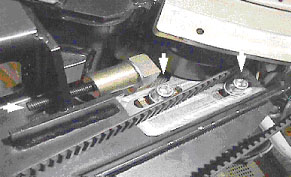 - Using a 10 mm hex key, or hex bit socket, loosen the two (2) mounting screws on the belt tension plate.