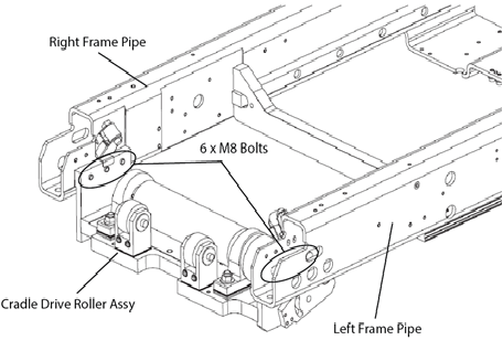 7. Loosen six (6) M8x20mm bolts to remove the Cradle Drive Roller Assy from the Right/Left Frame Pipe.