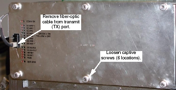 When working in the Right chassis, the fiber-optic cable must first be removed from the Transmit (“TX”) port (see Figure 2).