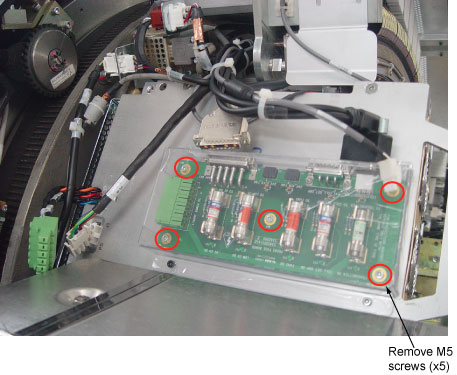 - Remove five (5) M5 screws on fuse board.