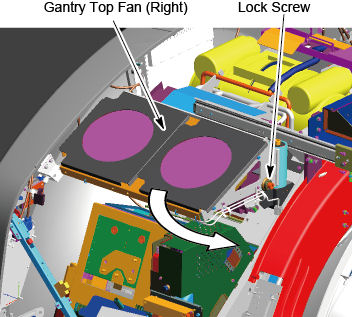 - Loosen the lock screw of the top fan assembly, and rotate the