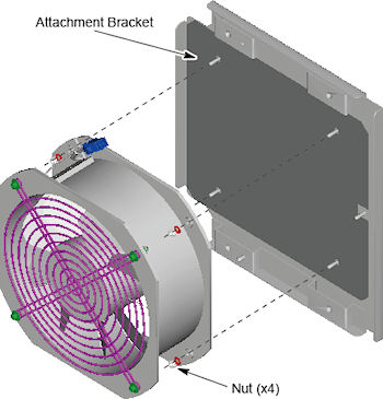 - Remove the 4 nuts, and remove the fan assembly from the attachment