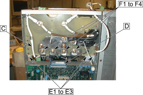 - Disconnect the 4 primary flat cables F1 to F4 frm the capacitor