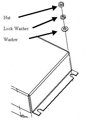Be careful not to lose the nuts and washers. Also notice that the flat washer is installed first, then the lock washer and then the nut.