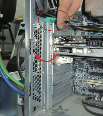 - Open PCI card retention clamp as follows: