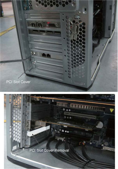 - Remove PCI slot cover from back side shown as below illustration.