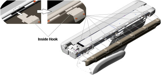 - Insert the inside hook into the gap between the bracket and top frame, and slide the top cover away from the Gantry.