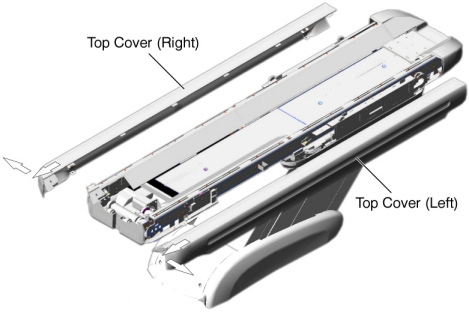 - Slide the top covers toward the Gantry, and remove the top covers.