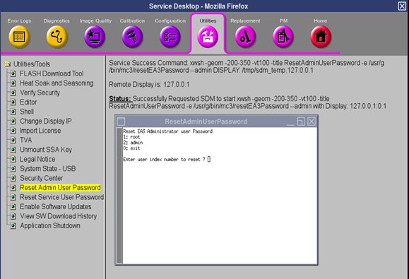 - Select Reset Admin User Password from Utilities tab.