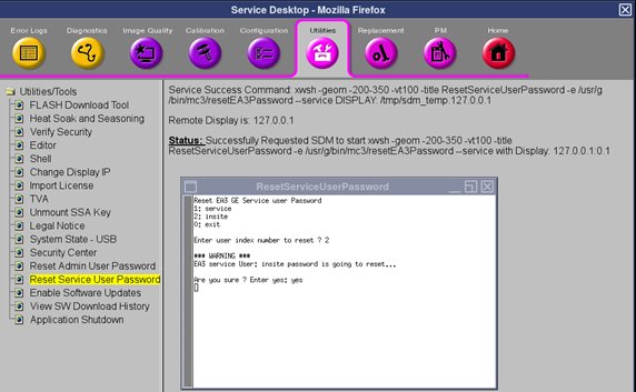 - Select Reset Service User Password from Utilities tab.