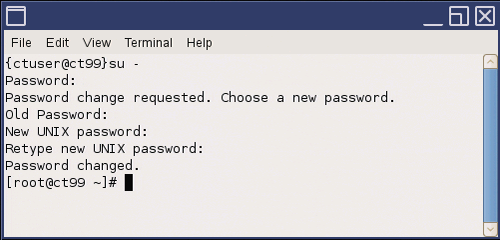 - Type: {ctuser@hostname} su —ENTER.