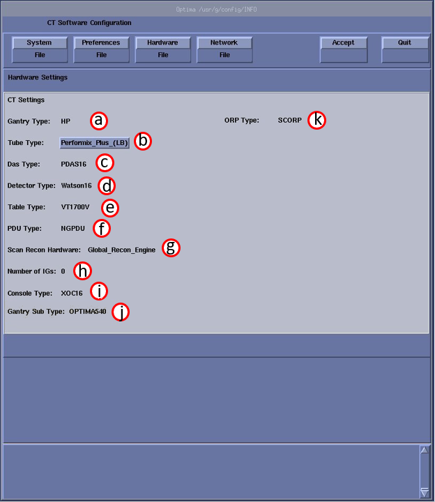 note: This screen provides the ability to declare the CT system on a hospital network. Key information such as Host Name, IP Address, Net Mask (for CT systems on a subnet) must be obtained from the hospital network administrator. - Configure Network Settings.
