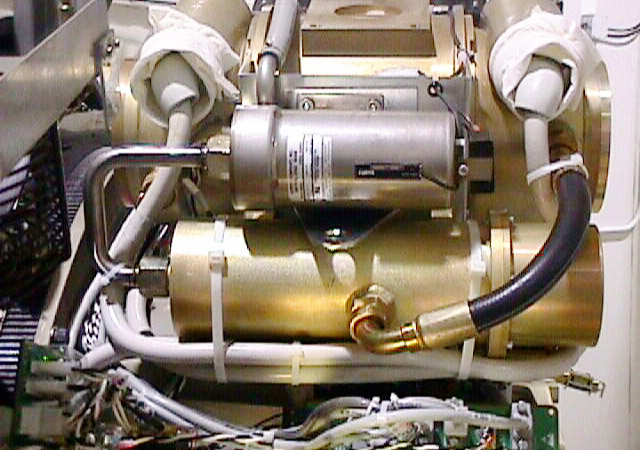 - Carefully swing the tube clear of the gantry.note: Be careful not to damage the fragile copper filter or lead shield in the mounting plate for the next step.