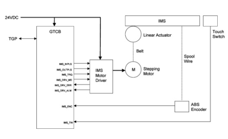 The IMS drive system is similar to cradle drive system except position sensing. The IMS only uses an absolute encoder for position sensing. Rotational power of the stepping motor is converted to linear movement by linear actuator. The IMS also has several touch switches, so that the GTCB stops motion of the IMS immediately after it detects the SHORT of the switch,