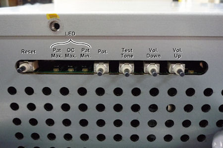 Push ‘SELECT’ once to choose the patient minimum POT (the ‘PATIENT MIN’ led should illuminate). Push ‘SELECT’ again to choose the console speaker POT (the 'OPERATOR MAX' led should illuminate). Push ‘SELECT’ again to choose the patient maximum POT (the ‘PATIENT MAX’ led should illuminate). Pushing ‘SELECT’ a fourth time will deselect all POTs and turn off all leds.