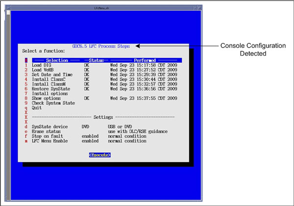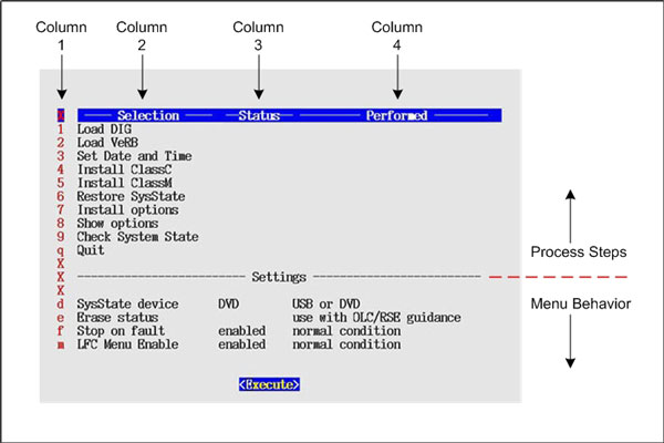 The LFC Menu tool is a means of executing the necessary process steps of a Load From Cold (LFC) procedure without using Linux command lines. The menu system performs the equivalent of the Linux command lines once the User has selected an item from the menu.