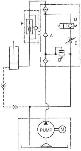 Check valve (A and C) – permit only one direction oil flow (indicated by arrow).