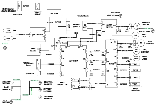 The GTCB measures elevation height by reading the digital-converted value of the voltage from the Elevation Potentiometer. When the table is moving up or down, the A/D converter is sampled by the firmware. The value from the A/D converter represents the table’s position. When the specific position is ok, the firmware stops the control signal.