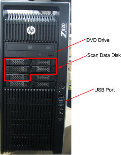 Five Scan Data Disks are connected to the RAID card that enables hardware RAID5 (approximately 512 Gigabytes).