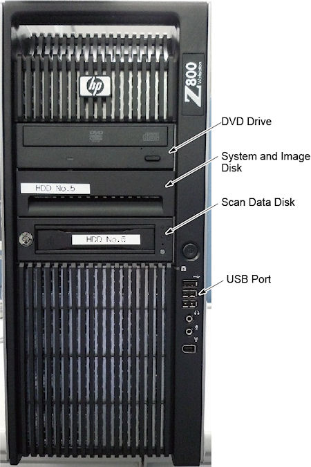 Host Computer - contains the System / Image Data Disks, FDIP board and five scan data disks structures RAID5 feature.
