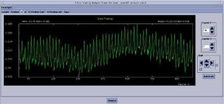 In the figures that follow, examples of “known” tracking plots are shown. Since plots vary from system to system, the examples shown should be used only as guides. Compare your system’s plots and analyze them relative to the specification shown in each figure. The plots shown are UN-FILTERED views, which is the default option when they are plotted. A 20 point boxcar filter takes the 20 view average and then plots the data.