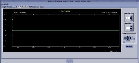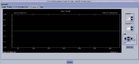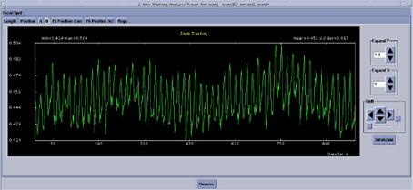 The Z-AXIS TRACKING tool can be used to plot various tracking functions, using a Scan Data Set. For a scan data set, the analysis package can plot different data versus views in UN-FILTERED (the default) or FILTERED (20 pt. Boxcar) formats. Numerical information (“Max”, “Min”, “Mean”, and “Std. Dev.”) is also provided. In some plots, the numerical information provided can be used for further analysis by comparing it to a “specification” value, as an indication of a pass/fail condition. Whereas other plots are more general, and in some cases may be useful, they are typically only used for troubleshooting.