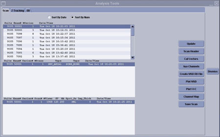 The UPDATE selection will refresh the List Select display if new scan files have been created since the Scan Analysis Tool was started.
