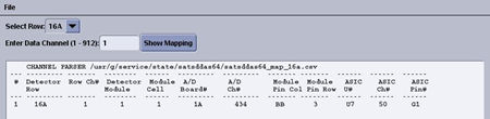 This brings up a utility to enter a data channel 1-912 and row number to show the mapping of that channel through the DAS/Detector hardware.