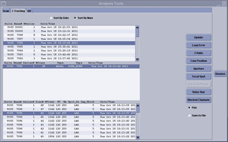The scan analysis feature allows users to have interactive access to scan files collected on the scanner. Scan data to be viewed can come from either patient scanning or from service mode tools such as Diagnostic Data Collection or Calibration.