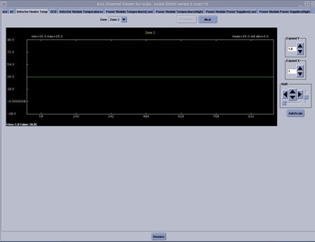 The detector heater temps are shown across all views as read by the rail thermistors. Zone 2 is the left zone, zone 3 is the center zone and zone 5 is the right zone.
