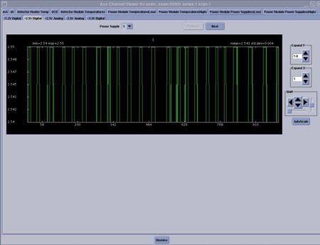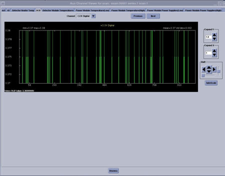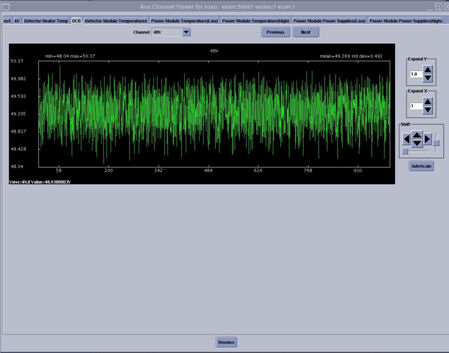 The DCB tab shows all the power supplies used by the SDCB and it measures the 48V master supply that is used by the entire DAS/Detector to generate all the lower voltages.