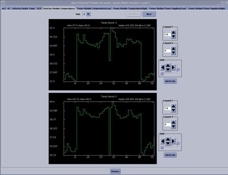 Scan analysis Aux Channel display will show plots for the following information that is contained in the scan footer of every scan. This data represents the state of the system during the scan.