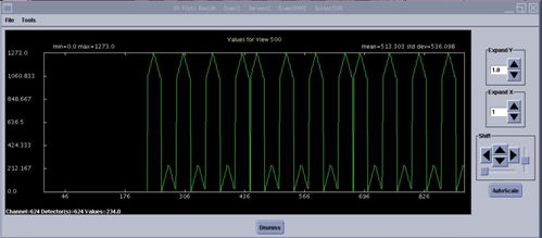 Data pattern test results for the A/D and SDCB boards can be viewed using Scan Analysis. Note the Exam and series for the desired test to view in the result screen of the Scan Data Path GUI. The following example screens show the data patterns to be expected from each test. The data patterns shown are the View Vs Channels (VVC) plot of one channel using all default settings within Scan Analysis. All Channels will look the same.