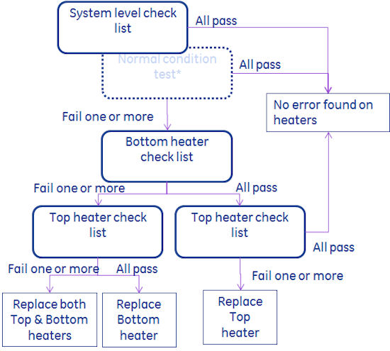 The following Illustration shows the procedure of each heater check. Normal Condition, Top heater check and Bottom heater check.