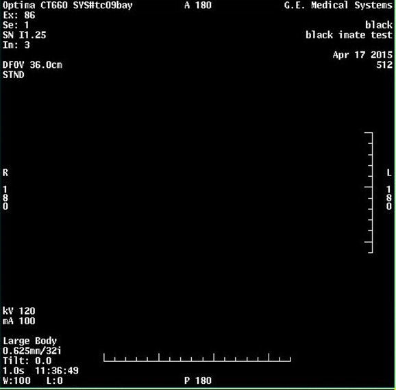 There are two vector data in Z_Alignment_Cal_Vector.csv. One for A side (left row) another one is for B side (right row), and the unit is mm. If any objects is in scan window during Mini check, the cal. vector will get abnormal data and images will be bad (Water image get black with WL0) with using the bad cal. vector. In this case, Z_Alignment_Cal_Vector.csv will only contain NaN. The following is example of bad image.